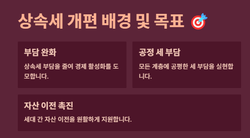 이번 개편안은 상속세 부담을 줄이고, 경제적 효율성과 공정성을 강화하는 데 중점을 두고 있습니다. 다만, 일부에서는 대기업에 유리하다는 비판도 존재합니다. 😊