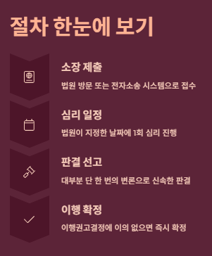 - 절차가 간단하고 신속합니다. (보통 1~2개월 내 판결) ⏱️