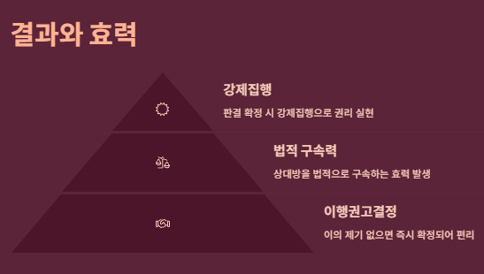 - 판결 후에도 상대방이 이행하지 않으면 강제집행 신청이 필요합니다.⚠️